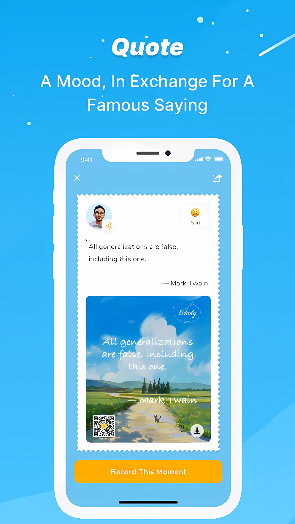Carefully selected and provided inspiring quotes from famous figures aim to motivate users to face life's challenges and difficulties with a positive mindset. These quotes serve not only as a gentle solace for the soul but also as a reinforcement of courage and perseverance on the journey ahead. The content of the daily quotes is meticulously chosen to spark positive energy in users, enhancing the emotional quality of their everyday lives. This feature not only enriches users' spiritual lives but also makes Echoly a caring companion offering emotional support and guidance for the soul, helping users find the strength and inspiration to move forward at different stages of life.