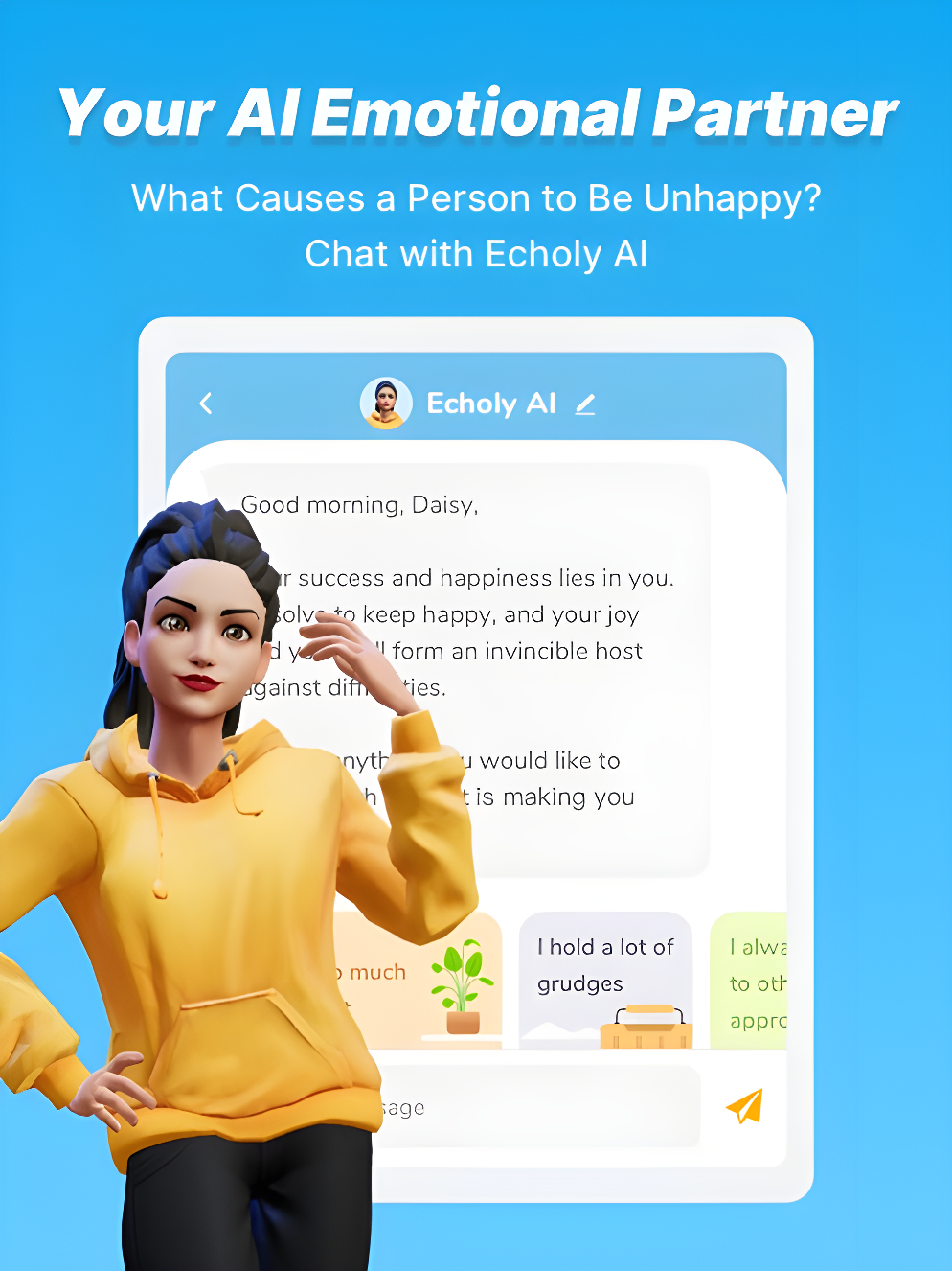Daily mood recording and analysis is one of the core features of Echoly, aimed at helping users better understand and manage their emotional states. Users can record their moods daily, along with brief diaries or notes. Echoly uses advanced AI technology to analyze these data, identify emotional patterns and trends, and thereby offer personalized mood assessments and improvement suggestions in subsequent periods.